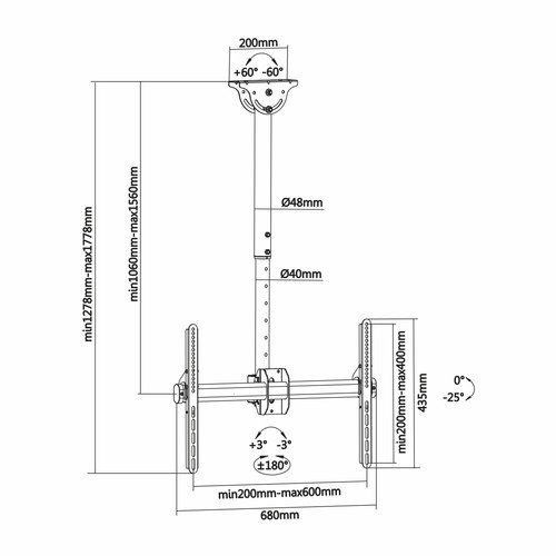 Soporte de techo giratorio, 37" - 70", VESA 200×200, 300×300, 400×200, 400×400, 600x400 mm, Negro
