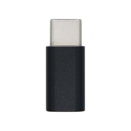 Adaptador USB 2.0 con conector tipo USB-C macho en un extremo y tipo Micro-B (5Pin) hembra en el otro.