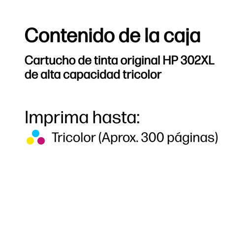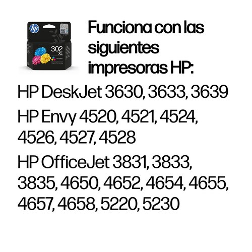 Cartucho de tinta original HP 302XL de alta capacidad tricolor