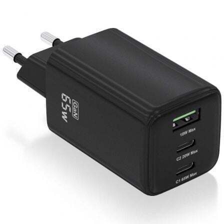 Cargador GaN USB-C 65W para cargar portátiles, móviles, cámaras y tablets etc. Diseño muy elegante, moderno y práctico.