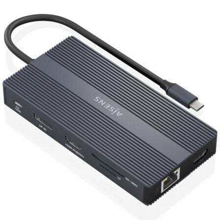 USB-C Dock 12 En 1, USB-C a 2xHDMI, 1xDisplayport, 1xRJ45, 4xUSB-A, 1xUSB-C, 1xUSB-C PD, 1xSD, 1xMicro SD, Gris, 20cm
