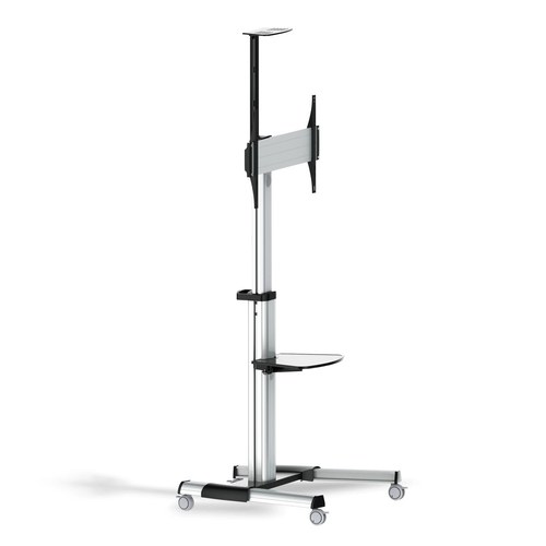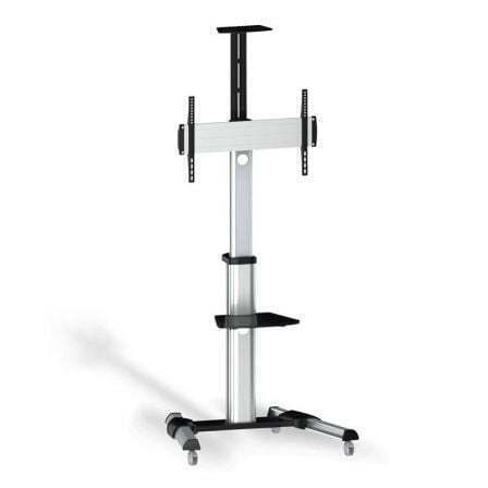 AISENS® – Soporte de suelo eco con rueda, bandeja para DVD y soporte de cámara para monitor/TV de 37”-70”. Fabricado con acero de alta resistencia y pintado con pintura electrostática para un acabado perfecto.