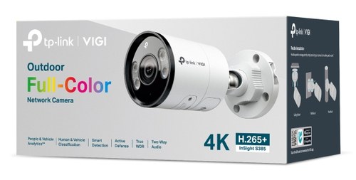 TP-Link INSIGHT S385. Tipo: Cámara de seguridad IP, Colocación soportada: Exterior, Tecnología de conectividad: Alámbrico. Tipo de montaje: Pared, Color del producto: Blanco, Factor de forma: Bala (forma). Ángulo de visión de la lente, horizontal: 111.4°,