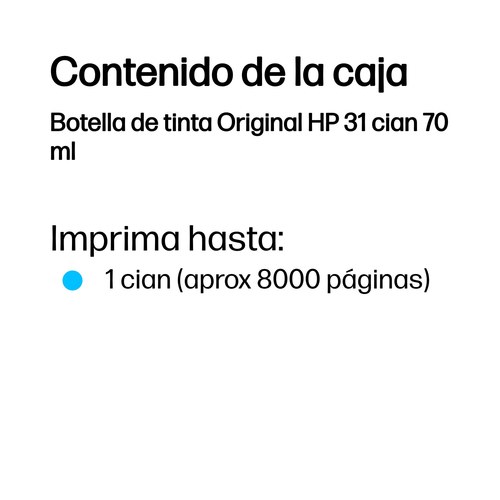 Botella de tinta Original HP 31 cian 70 ml
