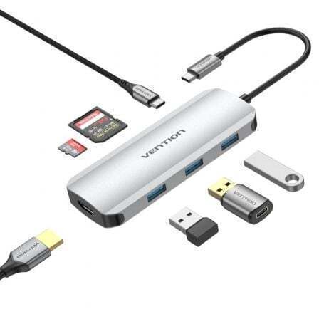 Expansión de múltiples interfaces: VENTION 7 en 1 USB C Hub con un adaptador HDMI 4K, 3 puertos USB 3.0 de 5 Gbps, suministro de energía de 100 W, lector de tarjetas SD y TF para satisfacer sus necesidades diarias de trabajo y vida.