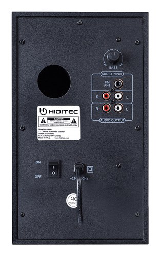 Hiditec H400 Dark Edition. Canales de salida de audio: 2.1 canales, Potencia estimada RMS: 40 W, Uso recomendado: Universal. Impedancia de altavoz satélite: 4 O, Diámetro del controlador de altavoz satélite de gama media: 7,62 cm (3"). Impedancia de subwo