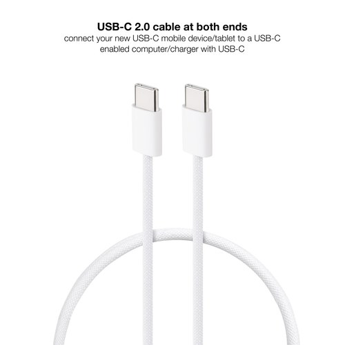 Cable USB-C 2.0 60W 3A, USB-C/M-USB-C/M, Blanco, 1 m