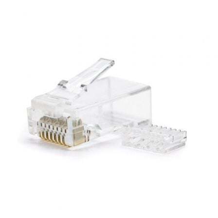 1 x Conector RJ45 8 hilos CAT.6 (100 conectores por bolsa incluyendo guías.)