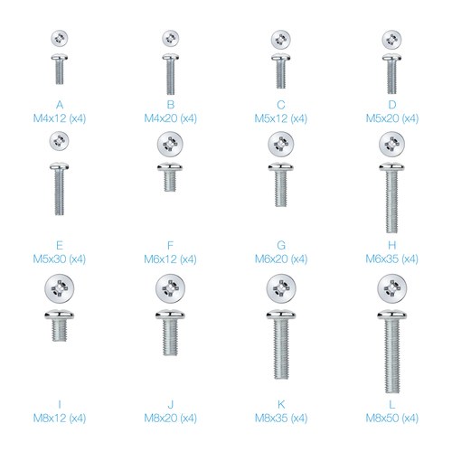 M4 / M5 / M6 / M8, 12 / 20 / 30 / 35 / 50 mm