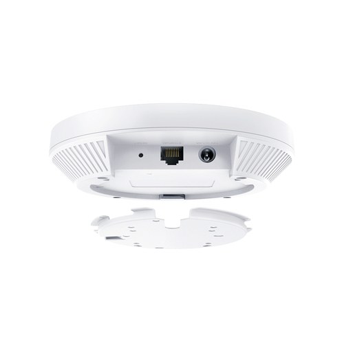 AX3000 Wi-Fi de 6 velocidades 2402 Mbps en 5 GHz 574 Mbps en 2,4 GHz Wi-Fi de alta eficiencia 6 Más dispositivos conectados pueden disfrutar de velocidades más rápidas Gestión centralizada de la nube Gestiona toda la red localmente o desde la nube Canal de 160 MHz Duplique los datos en las horas pico de transmisión en una sola transmisión con HE160 ‡ Selección automática de canales y ajuste de potencia Optimice el rendimiento general al reducir la interferencia WiFi Tecnología de malla Omada Implementación inalámbrica más flexible y conveniente Roaming continuo Transmisión ininterrumpida cuando se mueve entre puntos de acceso Diseño ultradelgado El diseño elegante de Φ160 mm × 33,6 mm brinda más agilidad Alimentado por PoE+ Admite CC (adaptador incluido) y 802.3at PoE+ para instalaciones flexibles