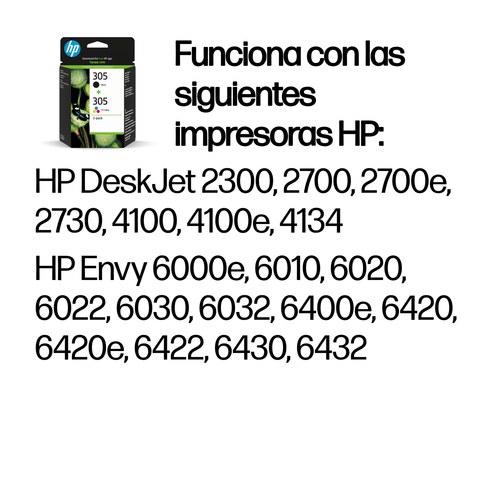 Paquete de 2 cartuchos de tinta original HP 305 tricolor / negro