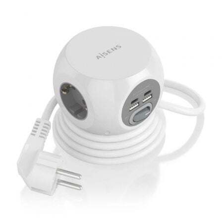 Regleta con Interruptor Aisens ASPS-2A2C04-W/ 3 Tomas de Corriente/ 2 USB Tipo-C/ 2 USB/ Cable 1.4m/ Blanco