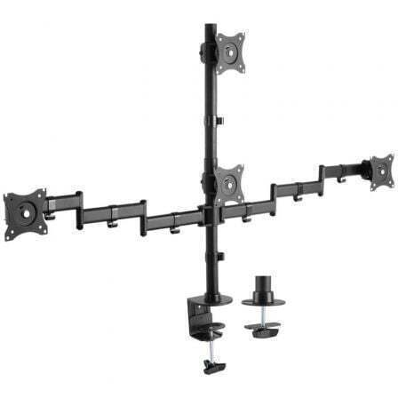 Soporte de Mesa Eco Giratorio e Inclinable para 4 Monitores 8kg (4 Pivotes, 2 Brazos) de 13"-27", Negro