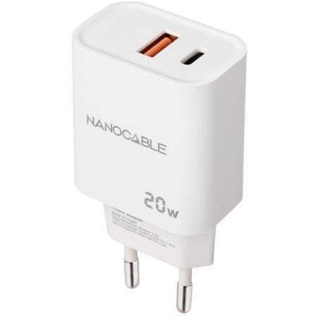 Cargador de Pared Nanocable 10.10.2007/ 1xUSB/ 1xUSB Tipo-C/ 20W/ Blanco