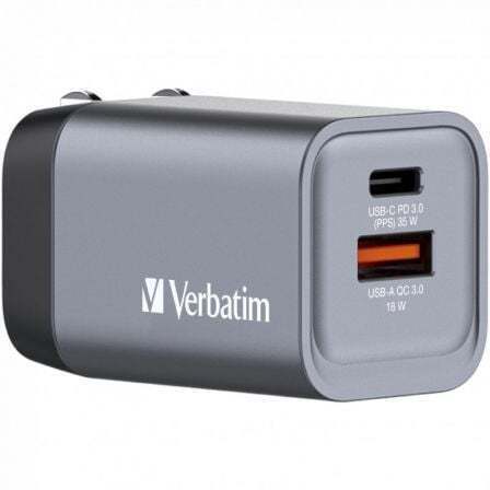 El cargador de pared GaN de 35 W de Verbatim combina un puerto USB-C PD de 35 W y un puerto USB-A QC 3.0 en un diseño elegante del tamaño de la palma de la mano. Ideal para la oficina, el hogar o los viajes, para alimentar su tableta, smartphone, dispositivos de juego, etc.