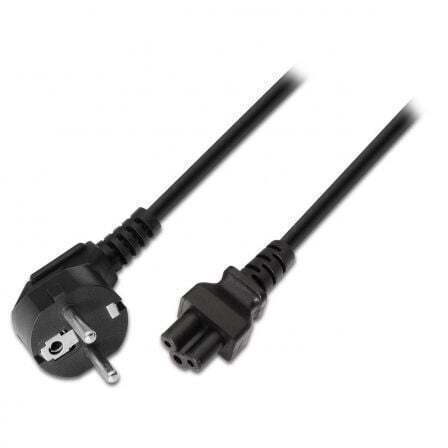 Cable alimentación trébol, CEE7 acodado/M-C5/H, negro, 1.5 metros, 100% cobre puro AWG18