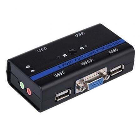 Conmutador KVM VGA USB 1U-2PC+cable, negro