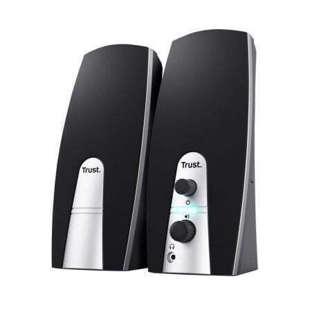 Compacto juego de altavoces estéreo con potencia de salida RMS de 5 Vatios (máx. potencia: 10 vatios)