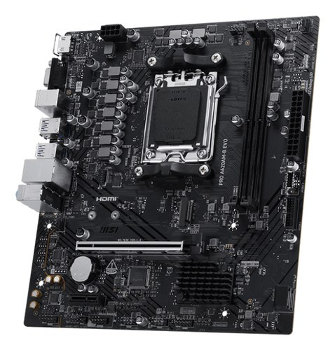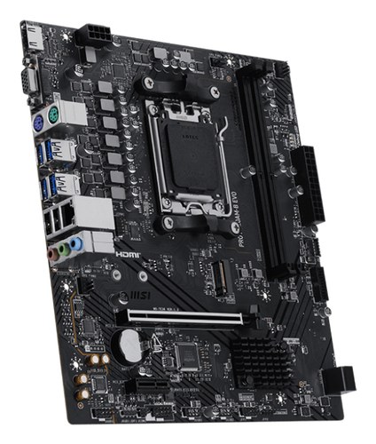 MSI PRO A620AM-B EVO. Fabricante de procesador: AMD, Socket de procesador: Zócalo AM5, Procesador compatible: AMD Ryzen 7000 Series, AMD Ryzen 8000 Series, AMD Ryzen 9000 Series. tipos de memoria compatibles: DDR5-SDRAM, Memoria interna máxima: 128 GB, Ti