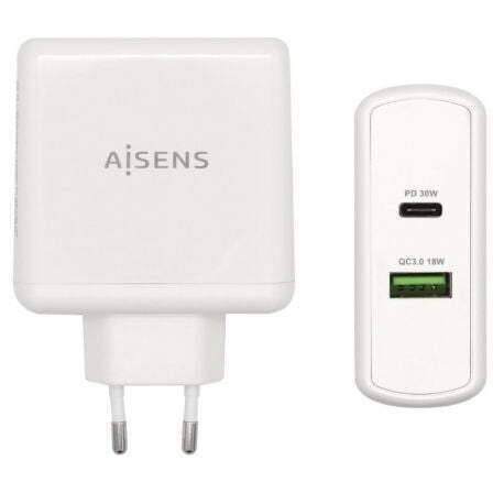 Cargador 48 W, 1x USB-C PD3.0 30 W, 1x USB-A QC3.0 18 W, Blanco