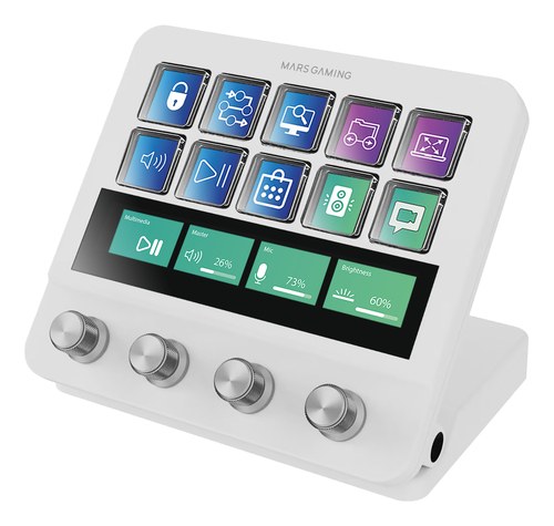 10 teclas LCD, 4 diales personalizables, LCD, 2× USB 3.0, USB-C, 5V, 0.6A, 132 x 124 x 50 mm, 387 g, Blanco