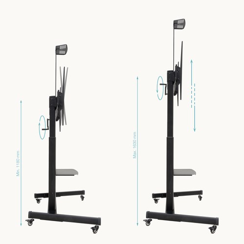 "AQUILES" Soporte de Suelo con Ruedas con Regulación de Altura para Pantallas 60"-100", Negro