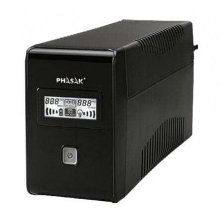 La serie Phasak LCD Interactive, incorpora tecnología Off-line en todas sus referencias. Su diseño innovador y compacto, y el intuitivo panel ofrecerán un total control y seguridad a sus equipos conectados. Cuenta con tomas RJ45 protegidas, que ofrecerán protección contra sobretensiones y ruido eléctrico para su conexión de teléfono / ADSL / Ethernet. Disponible en potencias de 600, 650, 850, 1000, 1500 y 2000 VA. La pantalla LCD proporciona información en tiempo real sobre las mediciones de tensión en la entrada y la salida del SAI, así como información sobre el tiempo de autonomía o la capacidad actual de carga de las baterías, entre otros datos relevantes. Puede realizar la gestión y el control de los parámetros del SAI a través del puerto USB con protocolo HID, que permite el acceso a la configuración y al cierre de sistemas de manera sencilla desde un ordenador con entrada USB. El software proporcionado VIEWPOWER permite la monitorización y la gestión de ficheros para Windows, Linux y Mac.
