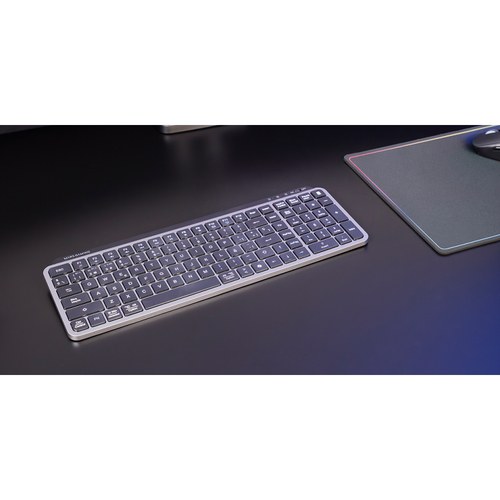 El MK SILENKEYS ofrece un layout completo con teclado numérico en un cuerpo slim y estrecho, optimizado para ahorrar espacio sin renunciar a ninguna tecla. Con unas dimensiones de 384×132×24 mm, se integra perfectamente en escritorios minimalistas, setups multi pantalla o estaciones de trabajo portátiles.