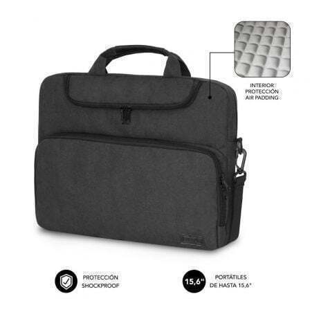 La protección total es una de las principales características del maletín para ordenadores portátiles Subblim Air Padding. En su exclusivo departamento para el ordenador cuenta con un revestimiento de burbujas acolchadas (Air Padding) que proporciona una protección excelente contra golpes o caídas accidentales. Diseñado con múltiples compartimentos. En el bolsillo frontal cuenta con un organizador de accesorios con espacio suficiente y muy fácil de transportar correctamente los artículos de uso diario resultando de gran utilidad para su trabajo o viaje. Gracias a los resistentes materiales de fabricación es capaz de repeler el agua y otros elementos además de presentar resistencia ante los desgarros. En definitiva es un maletín muy cómodo y duradero que resulta ideal para el viaje diario o de negocios gracias a las fuertes asas de transporte, correa de hombro ajustable y correa posterior ajustable a Trolley.
