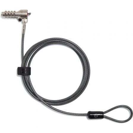 Rodea cualquier objeto fijo con el cable de acero galvanizado, recubierto con vinilo de 1,83 m (6 pies), engancha el portátil y bloquéalo con el mecanismo de presión sin llave y tu combinación personalizada de cuatro dígitos.
