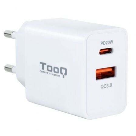 Cargador de Pared TooQ TQWC-2SC04WT/ 1xUSB Tipo-C/ 1xUSB/ 20W