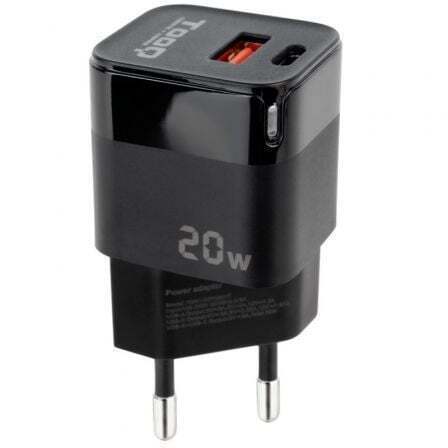 TQWC-QCPD20 Cargador de Pared USB-C/PD + USB-A/QC 20W, Negro