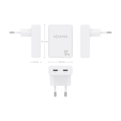 Cargador De Pared GaN Ultra Delgado 30W, 2xUSB-C PD3.0 QC4.0, Blanco