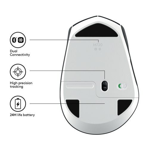 Triunfa en un mundo multidispositivo con M720 Triathlon Mouse. Pasarás fácilmente de una tarea a otra alternando entre tres ordenadores, y recorrerás rápidamente documentos y páginas Web gracias al desplazamiento superrápido. Con eficiencia mejorada, este ratón Bluetooth® y Unifying dura hasta 24 meses con una sola pila AA. Todo eso con un tamaño mediano y una forma cómodamente adaptable a la mano.