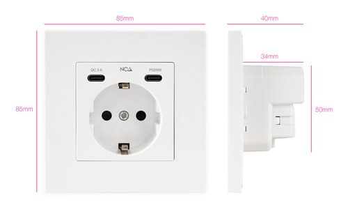 Base de enchufe de pared tipo Schuko con 2 tomas USB-C, QC 3.0 y PD 20W