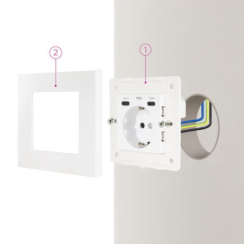 Base de enchufe de pared tipo schuko con 2 USB-C PD - Max. 3.4A, Blanco