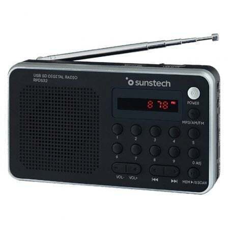 Radio portátil digital AM / FM súper compacta con puerto USB y ranura para tarjetas microSD / SD / MMC.