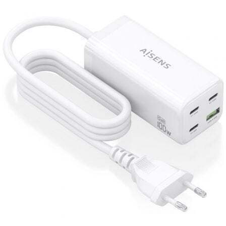 Cargador de sobremesa GaN USB-C de 100W. Carga rápidamente portátiles, móviles, tablets, cámaras u otros dispositivos. Su diseño de sobremesa ofrece un acceso cómodo y rápido a los puertos USB.Este cargador cuenta con la tecnología GaN que ofrece una serie de ventajas, incluyendo una mayor eficiencia energética, menor generación de calor, mayor capacidad de corriente y menor tamaño y peso en comparación con los cargadores tradicionales de silicio. Estas ventajas hacen que los cargadores GaN sean una opción cada vez más popular para usuarios que buscan una carga más rápida, eficiente y sostenible. Tecnología AI (chip inteligente) incorporado que detecta el tipo de protocolo del dispositivo conectado para maximizar tanto la compatibilidad como la velocidad de carga. Cargue su dispositivo USB-C o USB-A de forma fácil y sencilla. Múltiples protecciones contra sobrecarga, cortocircuito, lo que garantiza la máxima seguridad para su dispositivo. Este cargador puede cargar simultáneamente 4 dispositivos USB-A y USB-C a máxima velocidad.