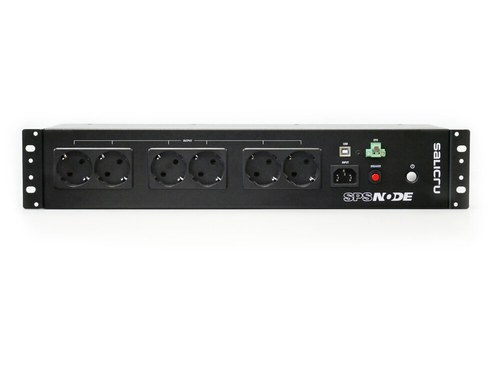 El SPS NODE está diseñado para ser compacto y con una potencia de 900VA, ideal para maximizar la eficiencia del espacio. Además del formato rack, puede ponerse encima de un mueble con sus patas de goma incluídas, o atornillarse discretamente debajo de una mesa, gracias a sus orejas de montaje giratorias. Es un SAI/UPS de tecnología off-line (stand-by), con tecnología de respaldo de batería de salida de onda pseudosinoidal, compatible con cargas tipo APFC, como fuentes de alimentación de PC de alta gama, y que permite arrancar directamente desde las baterías en caso de ausencia de corriente (cold-start).