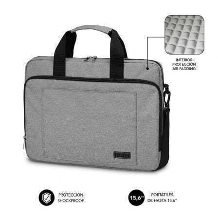 La protección total es una de las principales características del maletín para ordenadores portátiles Subblim Air Padding. En su exclusivo departamento para el ordenador cuenta con un revestimiento de burbujas acolchadas (Air Padding) que proporciona una protección excelente contra golpes o caídas accidentales. Diseñado con múltiples compartimentos. En el bolsillo frontal cuenta con un organizador de accesorios con espacio suficiente y muy fácil de transportar correctamente los artículos de uso diario resultando de gran utilidad para su trabajo o viaje. Gracias a los resistentes materiales de fabricación es capaz de repeler el agua y otros elementos además de presentar resistencia ante los desgarros. En definitiva es un maletín muy cómodo y duradero que resulta ideal para el viaje diario o de negocios gracias a las fuertes asas de transporte, correa de hombro ajustable y correa posterior ajustable a Trolley.