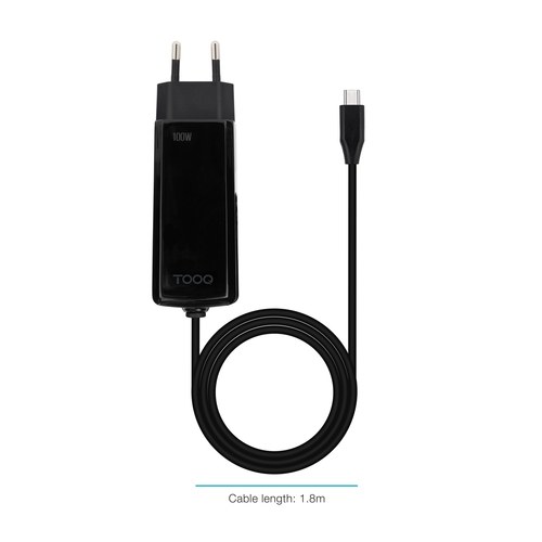TooQ Cargador de portátil GAN USB-C PD 100W, Negro. Tipo de cargador: Interior, Alimentación: Corriente alterna, Compatibilidad del cargador: Portátil, Universal. Voltaje de entrada: 110-240 V, Voltaje de salida máximo: 20 V, Corriente de salida de adapta