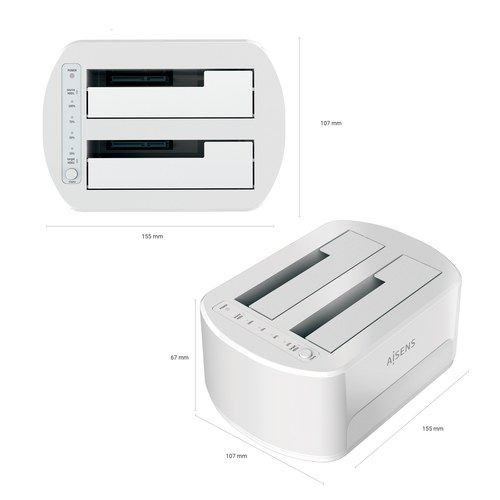 AISENS Estacion de Docking de Doble Bahia ASDS-D02W SATA 2.5/3.5 a USB 3.0/3.1 Gen1, Clone, Blanca. Tipo de almacenamiento: Unidad de disco duro, SSD, Interfaz de unidad de almacenamiento: SATA, Tamaños de almacenamiento en disco soportados: 2.5,3.5". Int