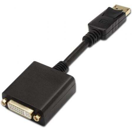 Conversor DISPLAYPORT a DVI con conector DP (20 Pines) macho en un extremo y DVI hembra (single link) en el otro.