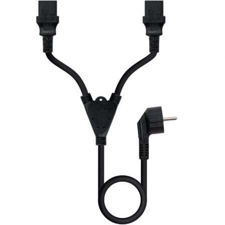 Conector CEE7 macho en un extremo y dos conectores C13 hembra en los otros.