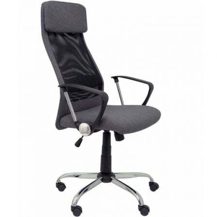 Silla de oficina Esteras con mecanismo Basculante tapizada con Tela color Gris y malla color Negro. Equipada con lumbar Fijo, Brazos fijos, Cabecero Fijo y Ruedas de nailon 50 mm