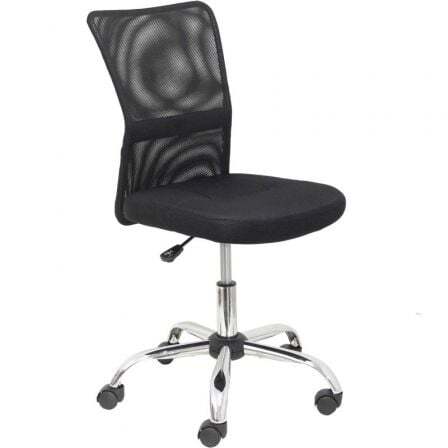 Silla de oficina Esteras con mecanismo Basculante tapizada con Tela color Negro. Equipada con lumbar Fijo, Brazos fijos, Cabecero Fijo y Ruedas de nailon 50 mm