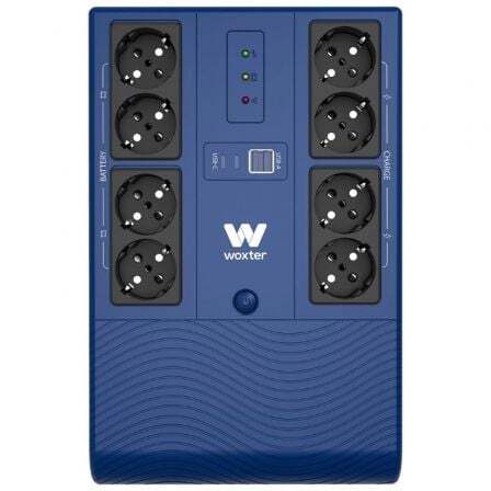 SAI Woxter Multibase 1200VA con batería de 12V/7Ah, 8 tomas Schuko y protección contra cortes de suministro. Ideal para PCs y equipos críticos.