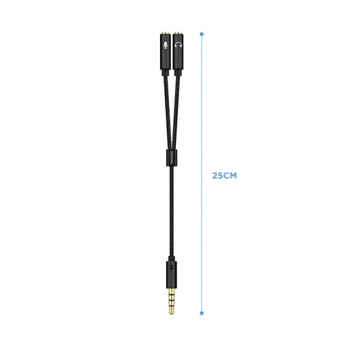 Cable Adaptador Audio Jack 3.5 4pines/M-2xjack 3.5 3pines/H, Negro, 25cm