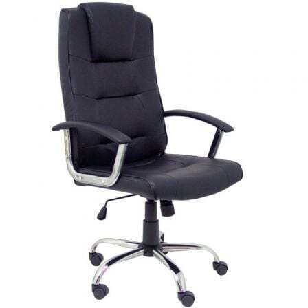Sillón Guadalimar con mecanismo Basculante tapizada con Similpiel color Negro. Equipado con Base cromada, Brazos fijos y Ruedas de nailon 50 mm