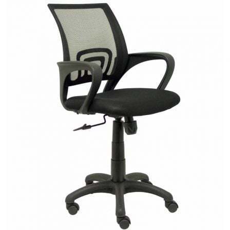Silla de oficina Vianos con mecanismo Basculante tapizada con Tela color Negro. Equipada con lumbar Fijo, Brazos fijos y Ruedas de nailon 50 mm
